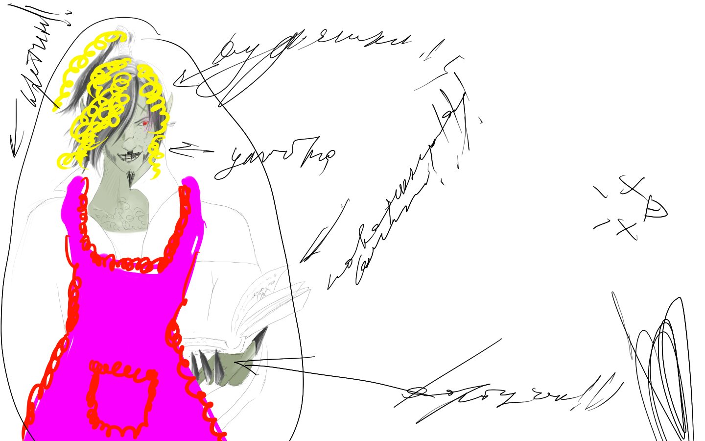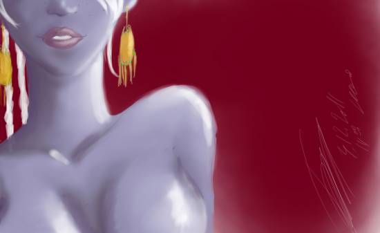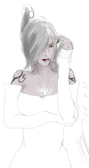 Рисовала ту, с луком которая лучница. У нее [задумалась] невероятно большие сиськи большой опыт сражений. И, не знаю почему, мне хотелось ее рисовать. И я сидела и рисовала. Долго и тщательно... - найти бы еще этот бред...