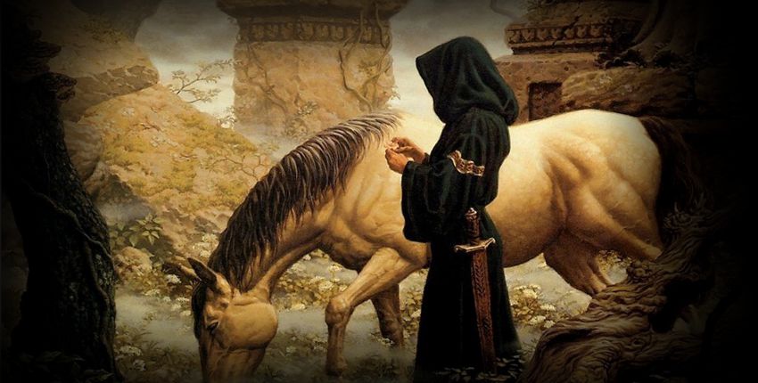 Никому не хотелось более оставаться в проклятой деревне. После непродолжительных сборов компания двинулась прочь от сгоревшего поселения. Когда пологие холмы, поросшие пожухлой травой и мелким кустарником, скрыли пепелище, нашелся и подходящий для привала пригорок. Под ним бил холодный чистый родник. Мелкие пташки с деловитым щебетанием перелетали по кустам. Небо расчистилось, в воздухе повеяло сухим дыханием недалекой пустыни.