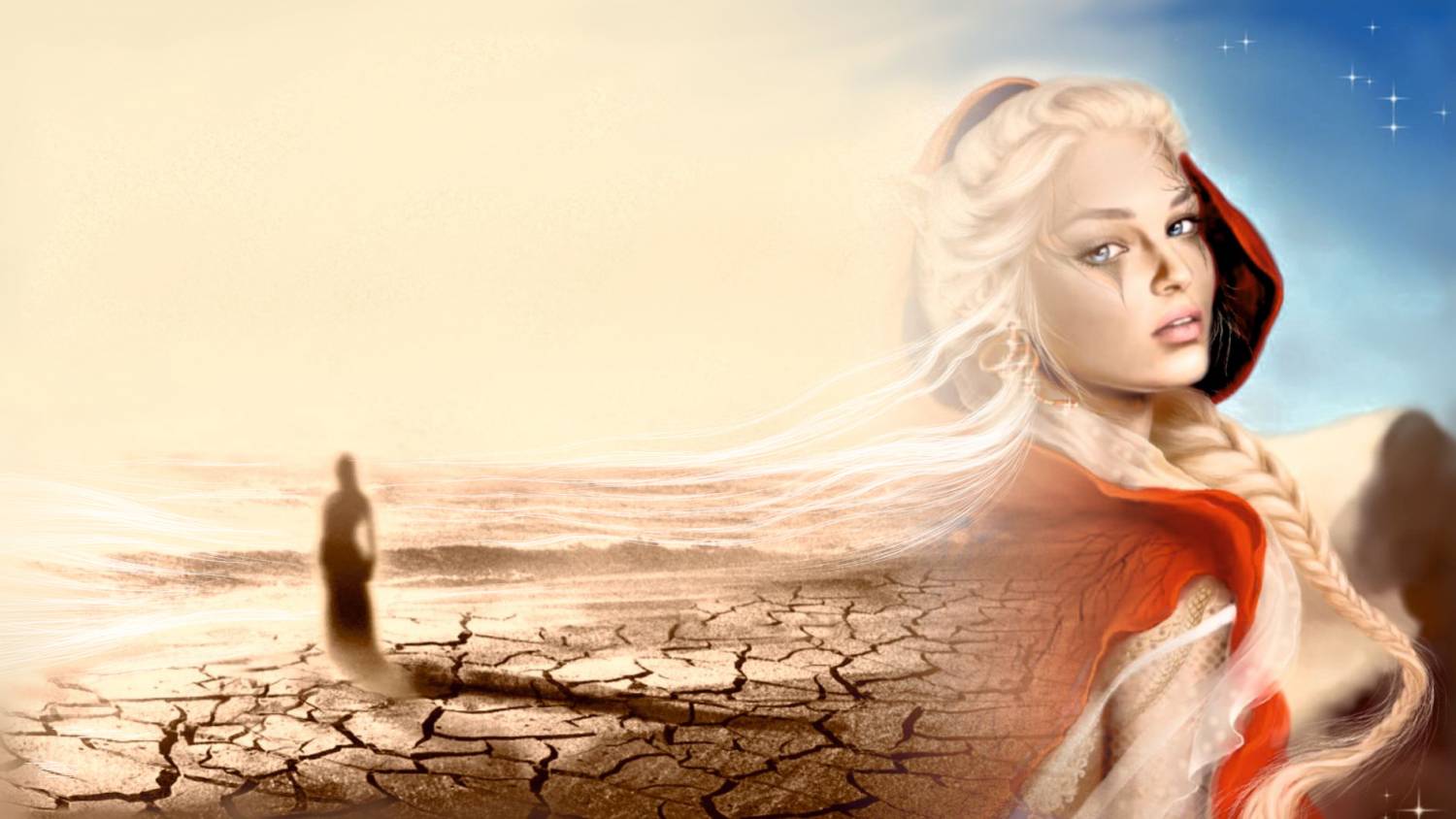 "Вихрь в который она попала постепенно стал утихать и появилось ощущение, что мельчайшие песчинки покалывают открытые участки кожи. Открыла глаза. И она обнаружила себя сидящей на желтом песке. Куда не посмотреть вокруг только песок. Море песка. барханы словно огромные волны окружали со всех сторон. Только вот это совсем не море и совсем не вода. При воспоминании о воде, во рту стало сухо. Перед ней неизвестно откуда, прямо из воздуха возник медный кувшин. С недоумением уставилась на него, но, тем не менее, взял
